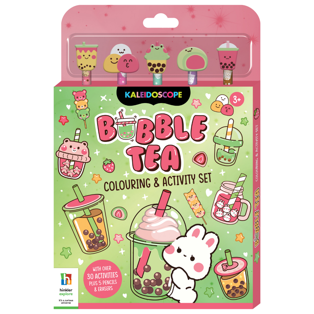 Kids will love jumping into a sweetly delicious world with this Bubble Tea Colouring & Activity Set! Filled with pages of colour & activity, the kit also comes with five pencils + special eraser toppers to use! Plus the toppers all feature yummy bubble-tea artwork!