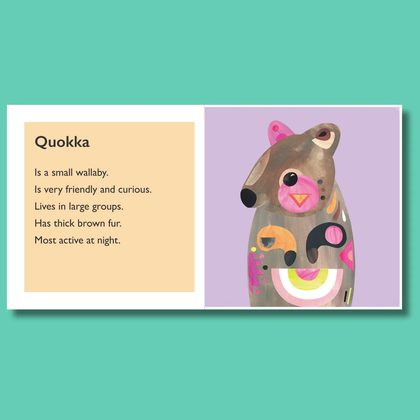 Explore Australia’s furry creatures through Pete Cromer’s bold and stunning portraits. This board book features 7 paper-cut artworks highlighting animals with fur, capturing Pete’s iconic colourful textures in a format perfect for little hands.