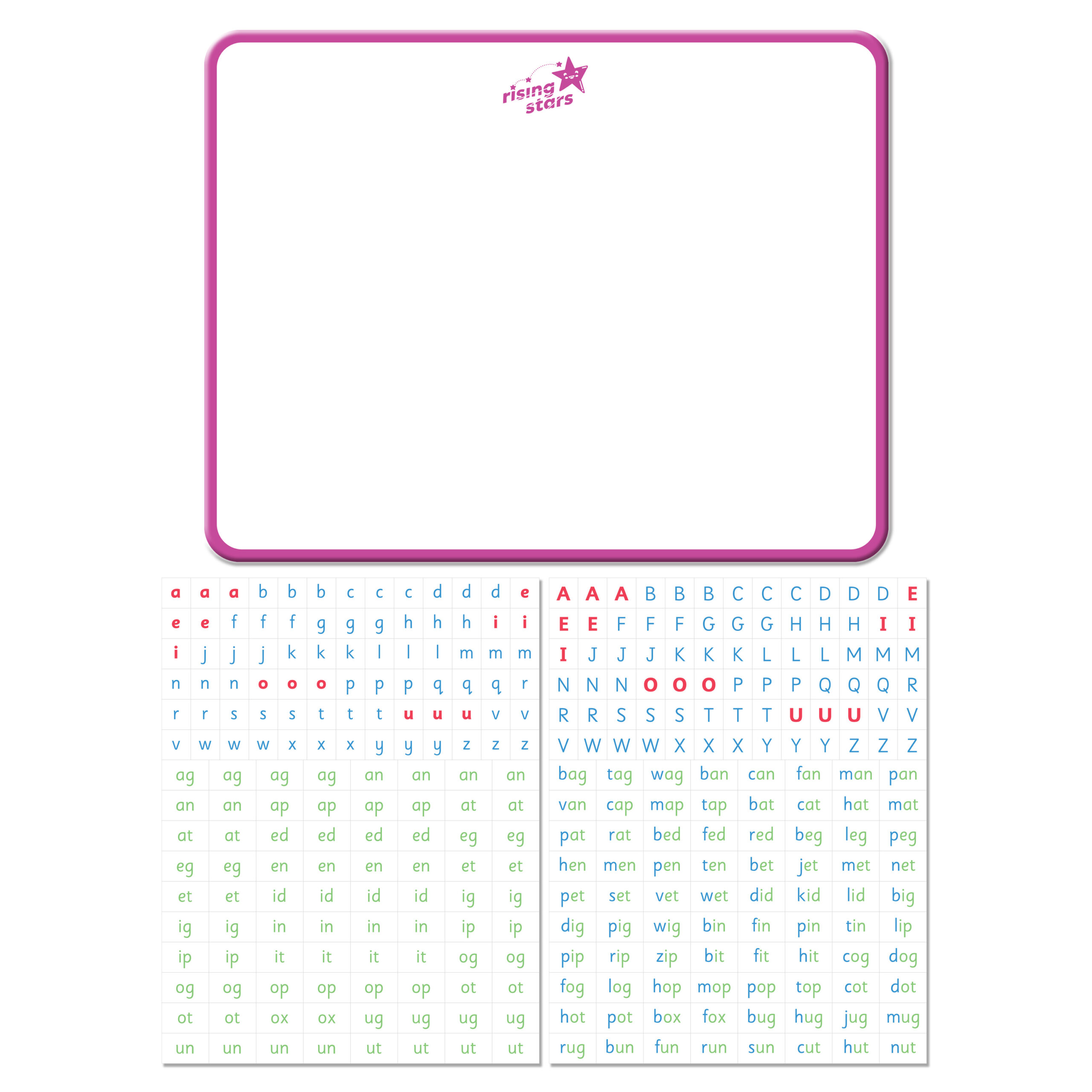 Rising Stars Short Words Magnets is a fun way to get kids invested in learning! It comes with two sheets of magnets and provides a playful, hands-on way to help your child learn to recognise letters and use them to read and write three letter words. By offering practice at changing particular letters of words, your child will learn to spell new words by using spelling patterns, rather than relying on memory. The word-building magnet activities allow your child to apply what they have learned as they progress through each concept and the play element keeps learning fun!
