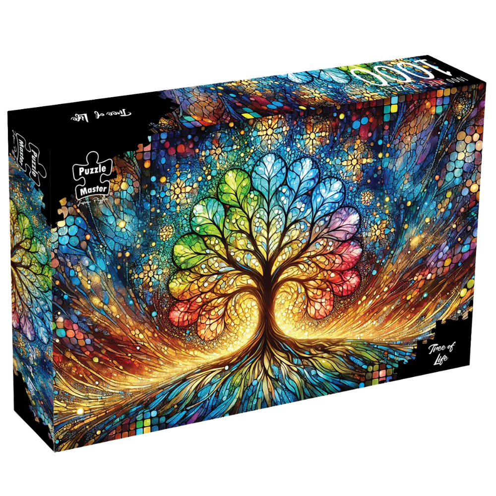 Immerse yourself in the vibrant beauty of the “Tree of Life” with this stunning 1,000-piece jigsaw puzzle from Puzzle Master. Featuring a breathtaking, stained-glass-inspired design, this puzzle is a masterpiece of color, symmetry, and intricate details. Each piece connects to reveal a radiant tree bursting with a spectrum of colors, symbolizing growth, connection, and the wonder of life itself.