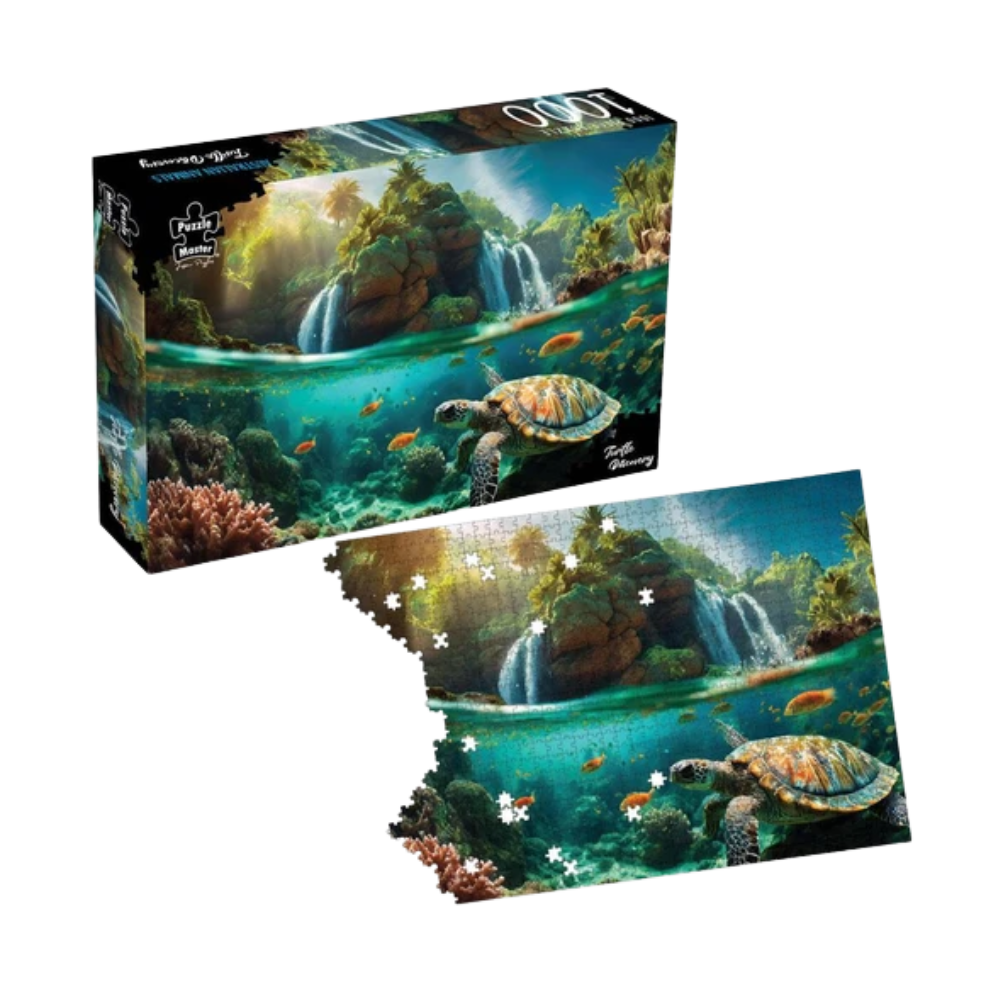 Get ready to embark on an enchanting journey with Puzzle Masters’ exquisite new collection: Surreal Australia. This 1000-piece puzzle invites you into a dreamlike adventure, where each piece holds a key to a world of imagination. At its heart, the puzzle reveals an underwater paradise. A majestic sea turtle glides gracefully through a vibrant reef, surrounded by swaying corals in a kaleidoscope of colors. It’s a scene that captures the tranquility and magic of the ocean, drawing you into the serene beauty of marine life. Beyond the reef, an intriguing island emerges on the horizon. Lush greenery cloaks its cliffs, while cascading waterfalls tumble into crystal-clear waters. The landscape is a surreal fusion of natural wonders, where the harmony between land and sea transports you to a place where fantasy meets reality. As you assemble each piece, the puzzle’s detailed artwork unfolds, immersing you in this captivating world. Whether you’re an experienced puzzler or just starting out, Surreal Australia offers a satisfying challenge that stimulates your mind and sparks your imagination. Let Puzzle Masters’ latest creation transport you to a realm where the ordinary becomes extraordinary. Get ready to discover the magic within every piece.