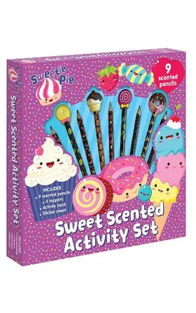 This delightful and delicious activity set contains many sweet surprises, such as 9 scented pencils, 4 cute pencil toppers, a sheet of stickers and a 16-page activity book filled with adorable word games, mazes and more!
